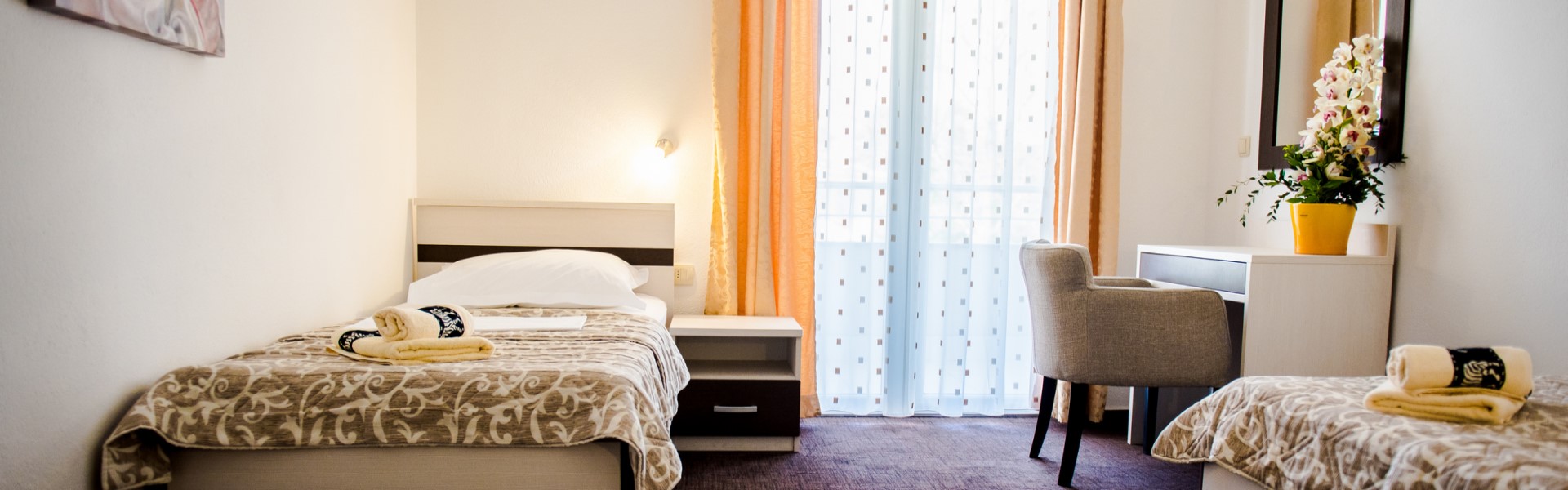 Raspolažemo sa 33 moderno opremljene sobe, kao i dvije sobe za invalide, ukupno 69 kreveta te liftom.